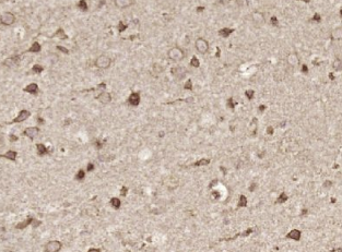在大脑中高度表达;在老年痴呆症的死后受试者中强烈减少。