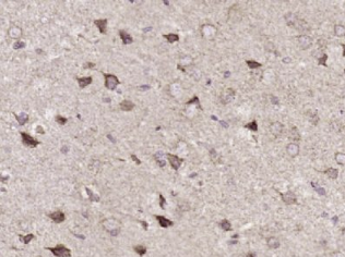 多聚甲醛固定,石蜡包埋(大鼠脑);用柠檬酸钠缓冲液(pH6.0)煮沸15min;用3%过氧化氢阻断内源过氧化物酶20分钟;阻断缓冲液(正常山羊血清)37℃30min;抗体(AdAR1)多克隆抗体在1:400过夜。在4°C下,接着是结合的二级抗体20分钟,并进行DAB染色