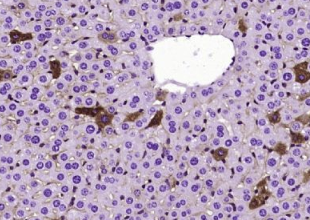 多聚甲醛固定,石蜡包埋(小鼠肝组织);用柠檬酸钠缓冲液(PH6.0)煮沸15min;用3%过氧化氢阻断内源过氧化物酶20分钟;阻断缓冲液(正常山羊血清)37℃30min;抗体(ANGPTL8)单克隆抗体,未结合(BSM-490腹水)19m)在1:400下在4°C下过夜,然后进行共轭二次20分钟并DAB染色。