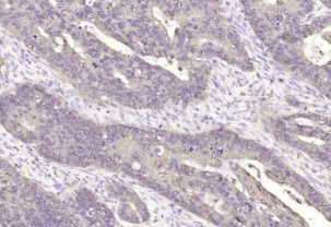 多聚甲醛固定,石蜡包埋(人结肠癌);用柠檬酸钠缓冲液(pH6.0)煮沸15min后获得抗原;用3%过氧化氢阻断内源性过氧化物酶20分钟;阻断缓冲液(正常山羊血清)37℃30min;用(bcl-2)Mo进行抗体孵育。未结合的单克隆抗体在1:200在4°C下过夜,然后根据SP试剂盒(小鼠)说明和DAB染色进行操作。