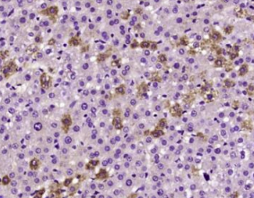 多聚甲醛固定,石蜡包埋(大鼠肝);柠檬酸钠缓冲液煮沸(15min)15min抗原回收;阻断内源性过氧化物酶3%过氧化氢20分钟;阻断缓冲液(正常山羊血清)在37°C 30分钟;抗体孵育与(多克隆)多克隆抗未结合体在1:400下在4°C下过夜,然后根据SP试剂盒(兔子)说明和DAB染色进行操作。