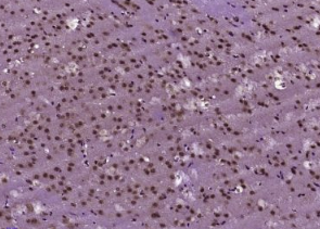 多聚甲醛固定,石蜡包埋(小鼠脑);用柠檬酸钠缓冲液(pH6.0)煮沸15min后获得抗原;用3%过氧化氢阻断内源过氧化物酶20分钟;阻断缓冲液(正常山羊血清)37℃30min;用(BNC1)多克隆抗体进行抗体孵育Tibody,未结合,1:400,4°C下过夜,然后根据SP试剂盒(兔子)说明和DAB染色进行操作。