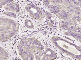 多聚甲醛固定,石蜡包埋(人肝癌);经柠檬酸钠缓冲液(pH6.0)煮沸15min后恢复抗原;用3%过氧化氢阻断内源性过氧化物酶20分钟;阻断缓冲液(正常山羊血清)37℃30min;用(BAG2)POL抗体孵育。未结合环抗体在1:400下在4°C下过夜,然后根据SP试剂盒(兔子)说明和DAB染色进行操作。